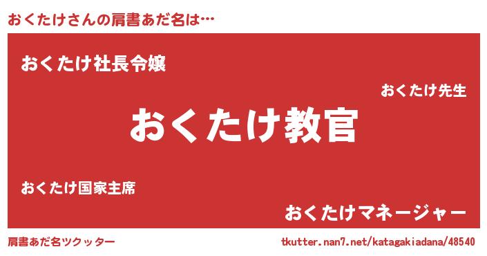 | ヘコむあだ名 | 『おくもー』『おくたけ(爆)』『豆乳』 |