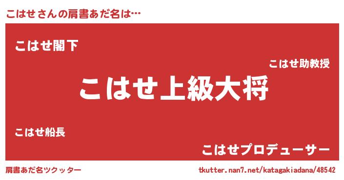 | ヒーロー風カッコイイあだ名 | 『究極戦士コハセ』『友情の使者こはせ』 |