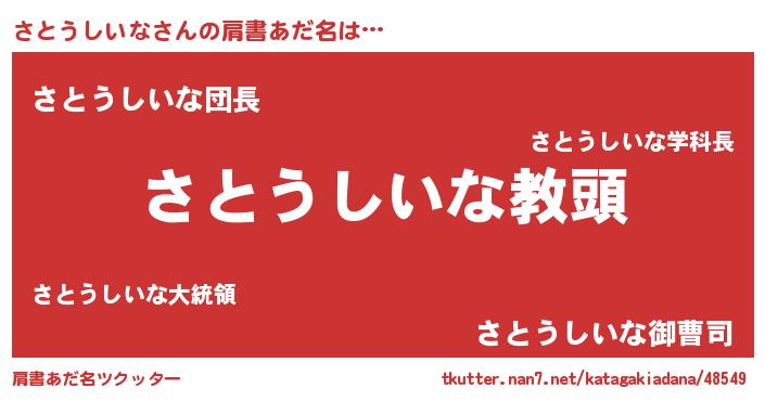 | 胡散臭い通販商品みたいなあだ名 | 『来世でも幸せになれる健康食品…その名も「さとうしいな」』 |