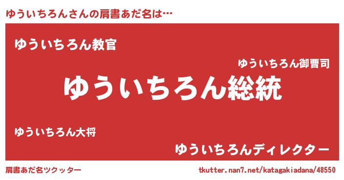 | 男性向けラノベタイトル風あだ名 | 『Re:ゆういちろんから始める異世界生活』 |