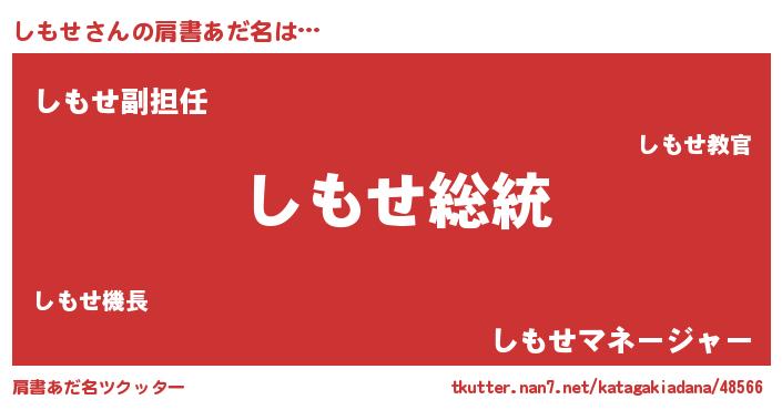 | 意味不明あだ名 | 『自称しもせ』『永久保存しもせ』 |