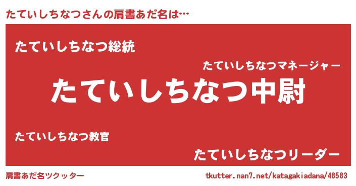 | 男性向けラノベタイトル風あだ名 | 『タテイシチナツスレイヤー』 |