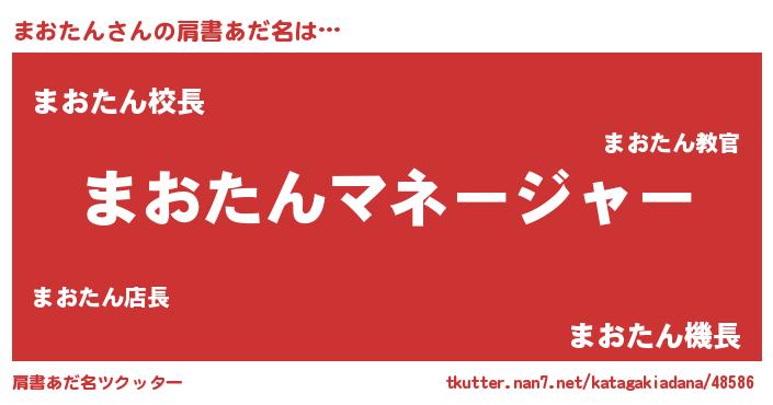 | 男性向けラノベタイトル風あだ名 | 『まおたんに滅ぼされるだけの簡単なお仕事です』 |