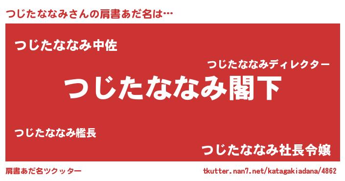 | 男性向けラノベタイトル風あだ名 | 『Re:つじたななみから始める異世界生活』 |