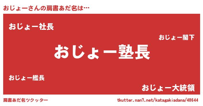 | 意味不明あだ名 | 『とにかく怪しいおじょー』 |