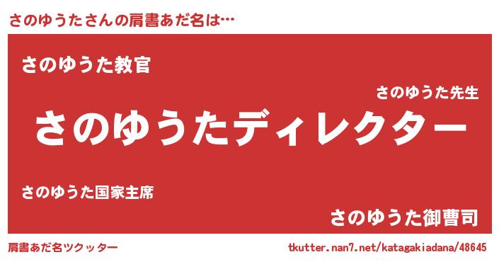 | ヒーロー風カッコイイあだ名 | 『仮面サノダー』『スーパーサノユウタ』 |