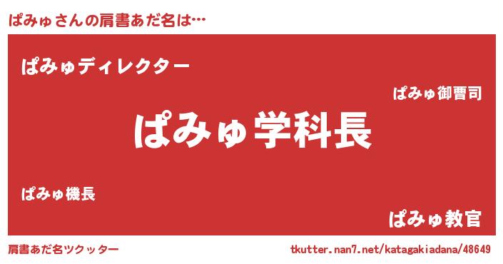 | ヒーロー風カッコイイあだ名 | 『友情の使者ぱみゅ』『仮面パミダー』 |