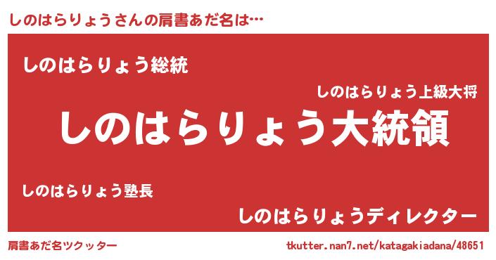 | 女子向けラノベタイトル風あだ名 | 『しのはらりょうの雑貨屋さん』 |