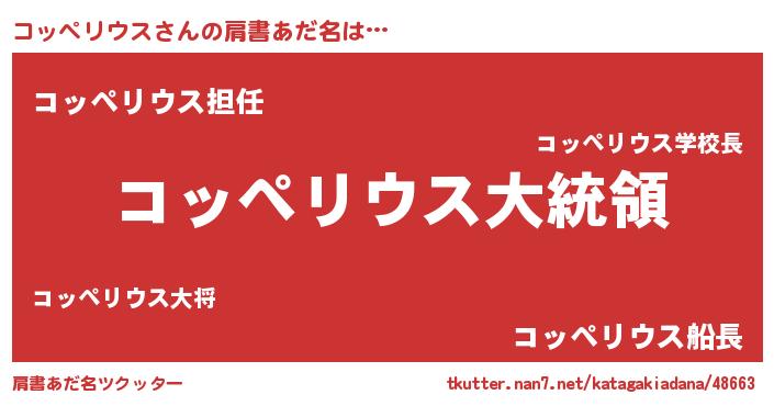 | 欧米人風あだ名 | 『コッペリウスクリステル』 |