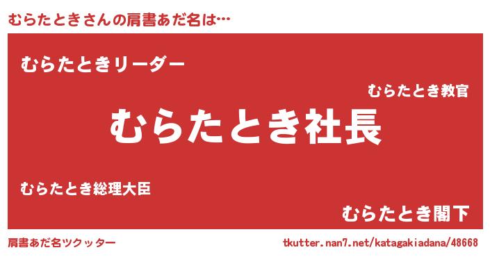 | 男性向けラノベタイトル風あだ名 | 『むらたときの憂鬱』 |
