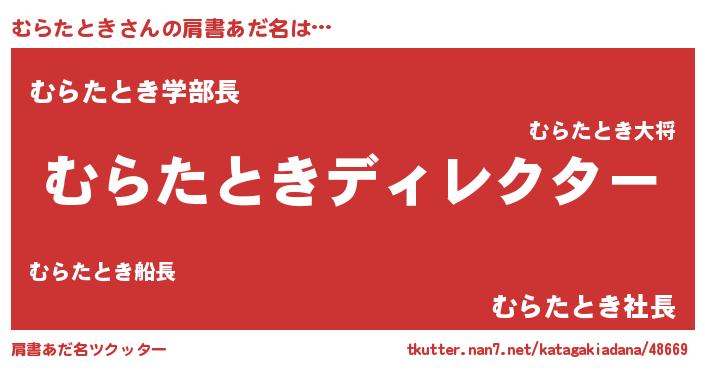 | 男性向けラノベタイトル風あだ名 | 『はたらくむらたときさま!』 |