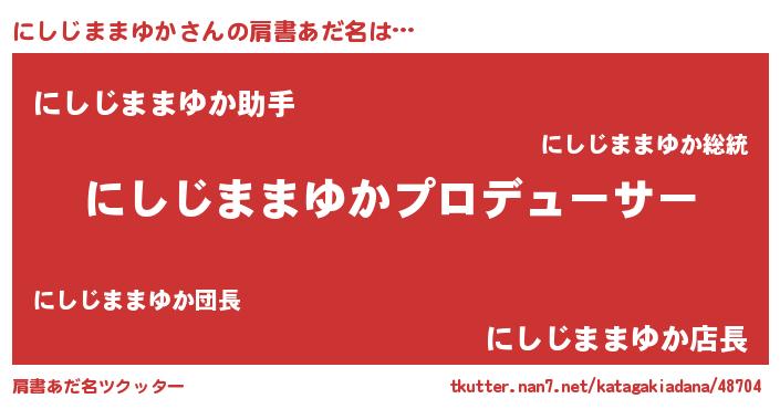 | 男性向けラノベタイトル風あだ名 | 『にしじままゆかに滅ぼされるだけの簡単なお仕事です』 |