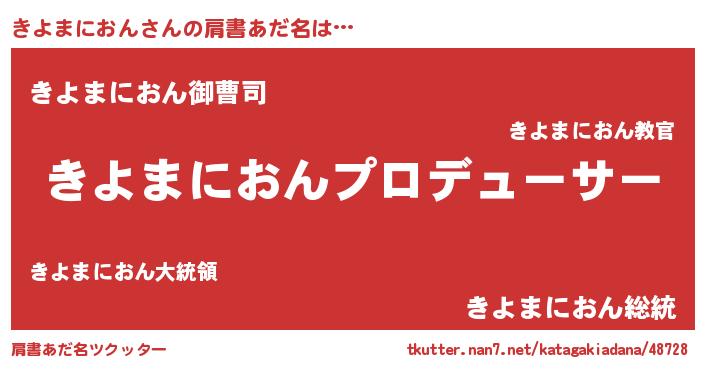 | 男性向けラノベタイトル風あだ名 | 『きよまにおんに滅ぼされるだけの簡単なお仕事です』 |