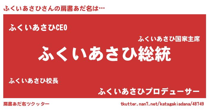 | 意味不明あだ名 | 『自称ふくいあさひ』 |