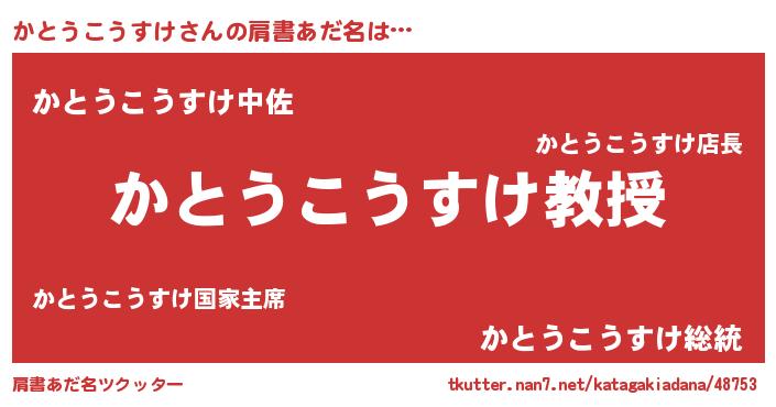 | 男性向けラノベタイトル風あだ名 | 『ノーゲーム・ノーカトウコウスケ』 |