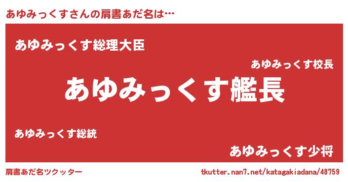 | 胡散臭い通販商品みたいなあだ名 | 『運命の人と巡り会える高級そうな壺…その名も「あゆみっくす」』 |