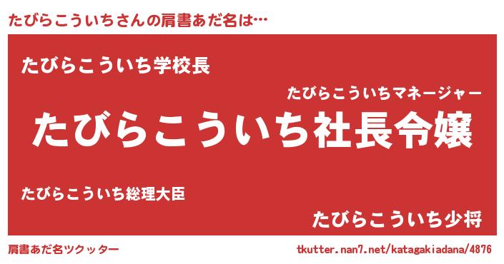 | 恥ずかしいあだ名 | 『プリティーたびらこういち』『たびちん』 |
