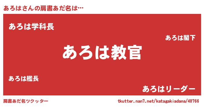 | 男性向けラノベタイトル風あだ名 | 『この素晴らしい世界にあろはを!』 |