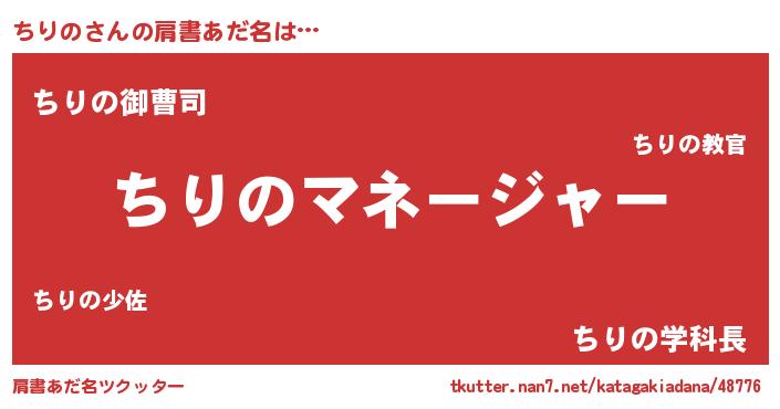 | ヒーロー風カッコイイあだ名 | 『スーパーチリノ』『正義の使者ちりの』 |