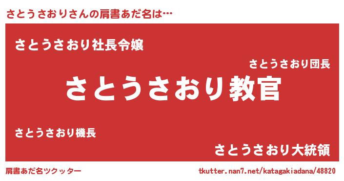 | 男性向けラノベタイトル風あだ名 | 『この素晴らしい世界にさとうさおりを!』 |