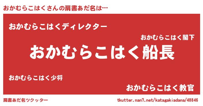 | 意味不明あだ名 | 『住所不定無職おかむらこはく(3歳)』 |