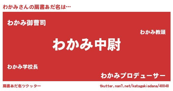 | ヘコむあだ名 | 『わかにゅー』『わかみ(震え声)』 |