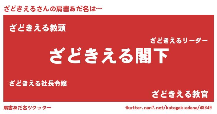 | 意味不明あだ名 | 『自称ざどきえる』『永久保存ざどきえる』 |