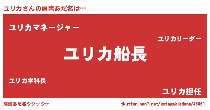 | 男性向けラノベタイトル風あだ名 | 『緋弾のユリカ』『はたらくユリカさま!』 |