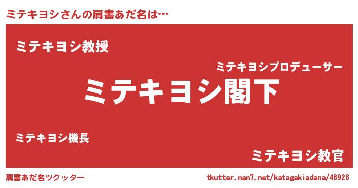 | ヒーロー風カッコイイあだ名 | 『超時空戦士ミテキヨシ』『仮面ミテダー』 |