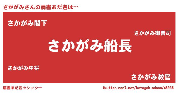 | 男性向けラノベタイトル風あだ名 | 『うちのさかがみが世界を掌握している!』 |