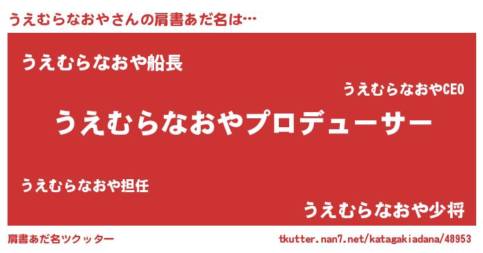 | ヘコむあだ名 | 『うえもー』『うえむらなおや(笑)』 |