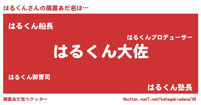 | 男性向けラノベタイトル風あだ名 | 『ハルクンスレイヤー』『はるくんの憂鬱』 |