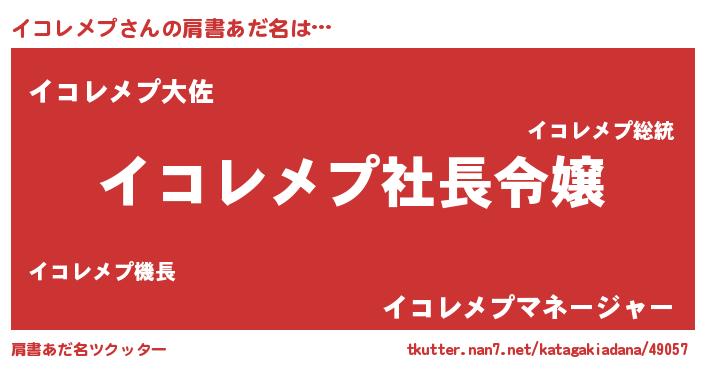 | 胡散臭い通販商品みたいなあだ名 | 『モテモテ間違いなし霊験あらたかなお札…その名も「イコレメプ」』 |