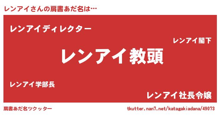 | ヘコむあだ名 | 『レンアイ(笑)』『レンふぇ~』 |
