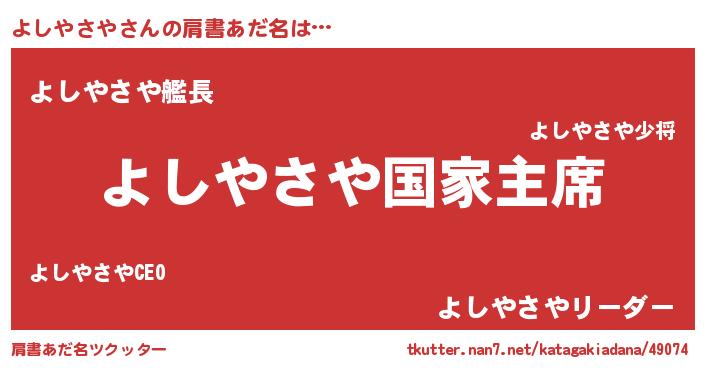 | ファンタジー風あだ名 | 『エターナルヨシヤサヤー』『ヨシフェル』 |