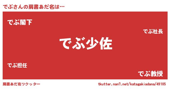 | 女子向けラノベタイトル風あだ名 | 『でぶの玉の輿計画!』『死神でぶの再婚』 |