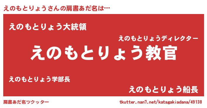 | 意味不明あだ名 | 『住所不定無職えのもとりょう(8歳)』 |