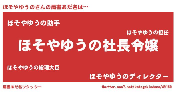 | ヒーロー風カッコイイあだ名 | 『スーパーホソヤユウノ』『炎刃騎士ホソ』 |