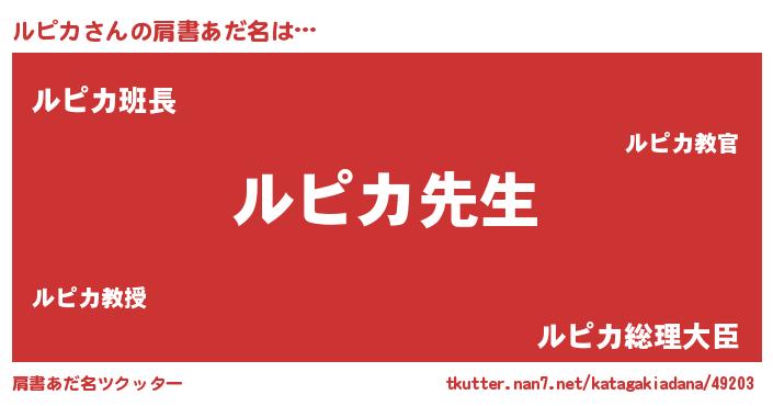 | ヘコむあだ名 | 『ルピカ(小並感)』『ルピ太郎』 |