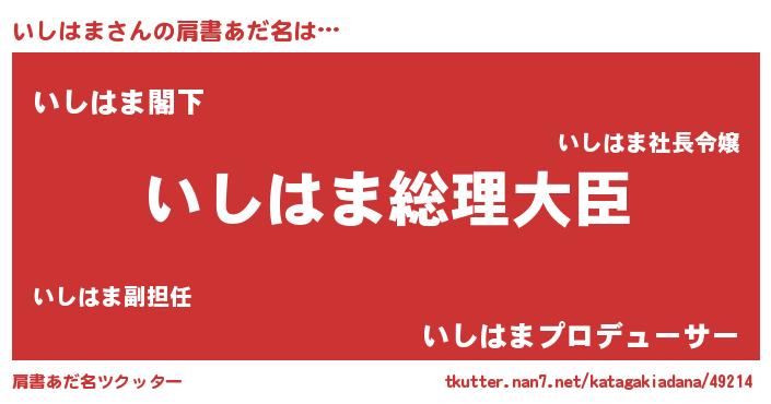 | 男性向けラノベタイトル風あだ名 | 『やはりいしはまの青春ラブコメはまちがっている 』 |