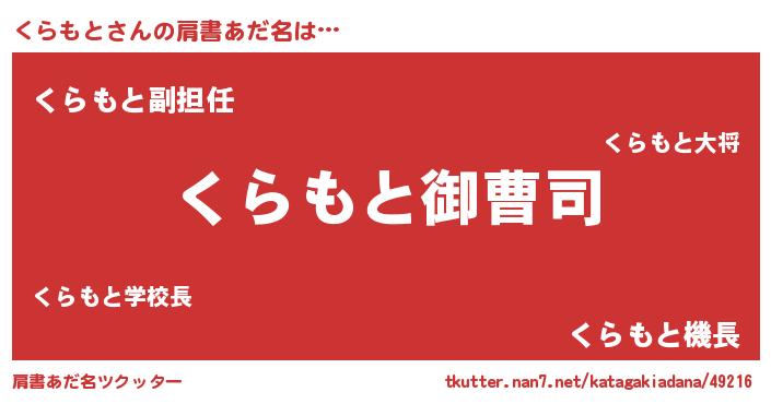 | ヘコむあだ名 | 『くらっふぃ~』『くらもと(遠い目)』 |
