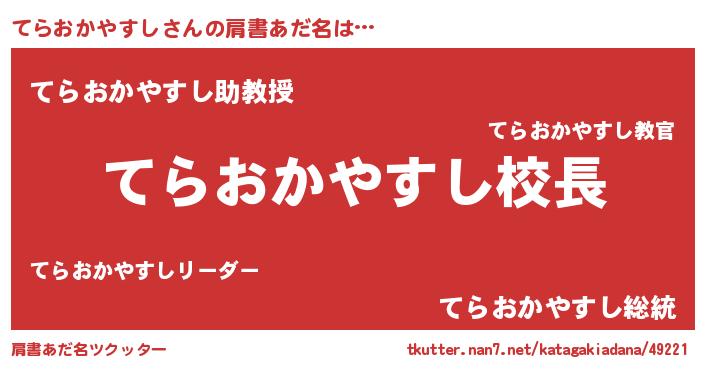 | ヘコむあだ名 | 『てらおかやすし(笑)』『てらを』 |