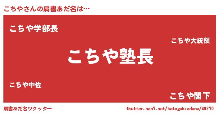 | ヒーロー風カッコイイあだ名 | 『魔戒騎士コチ』『友情の使者こちや』 |