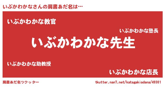 | 欧米人風あだ名 | 『ダルビッシュいぶかわかな』 |
