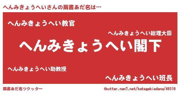 | 意味不明あだ名 | 『自称へんみきょうへい』 |
