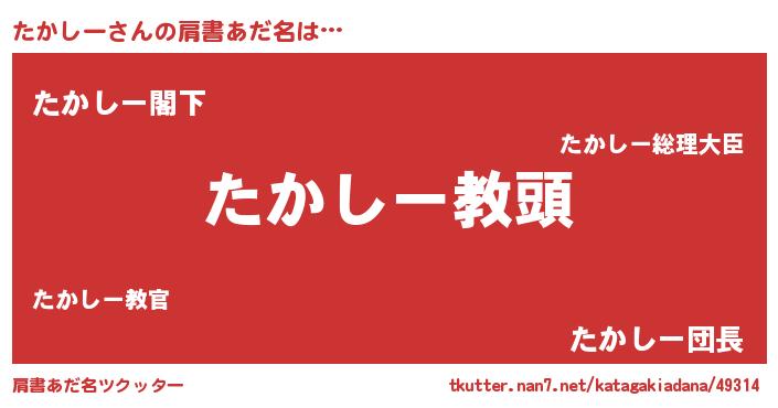 | 意味不明あだ名 | 『永久保存たかしー』『自称たかしー』 |