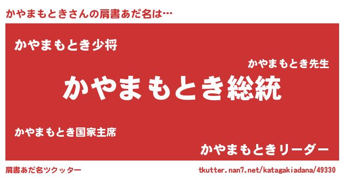| ヘコむあだ名 | 『かやっ子』『かやまもとき(爆)』 |
