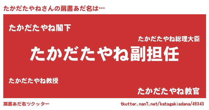 | 意味不明あだ名 | 『永久保存たかだたやね』 |