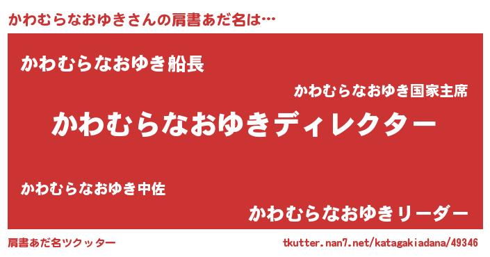 | 意味不明あだ名 | 『とにかく怪しいかわむらなおゆき』 |