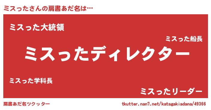 | ヒーロー風カッコイイあだ名 | 『ウルトラミスったマン』『暗黒騎士ミス』 |